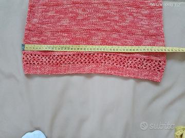 Maglia traforata in filo Camomilla, con scollo tondo e vestibilità morbida. Misura 44, colore arancione/melage. Perfetta su pantaloni ampi o jeans a vita alta per un look rilassato ma brillante. Come nuovo messo pochissime volte.