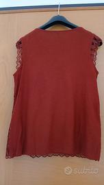 Maglia terracotta in cotone e pizzo