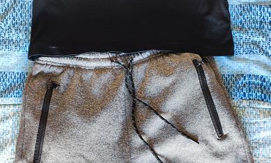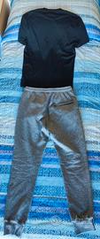 t-shirt nera con stampa +pantaloni sportivi grigi