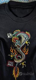 set abbigliamento uomo/ragazzo composto da: Pantaloni Jogger Sportivi: color grigio mélange, modello dal taglio moderno affusolato . Dotati di tasca laterale verticale con zip nera, elastico in vita con coulisse regolabile e polsini alle caviglie. Tessuto morbido e confortevole. T-shirt Nera: maglia a maniche corte in poliestere con stampa grafica frontale di un drago orientale colorato e fiamme