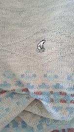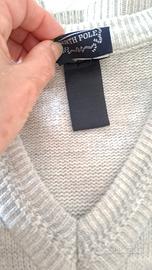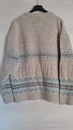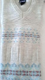 maglia uomo scollo a V made in italy colore grigio chiaro con motivo geometrico sul davanti e maniche l'etichetta interna con taglia e composizione si è scolorita nel tempo, ma il capo veste circa una M/L vedi misure da ascella ad ascella cm 55 lunghezza cm64 buone condizioni con normale usura del tempo