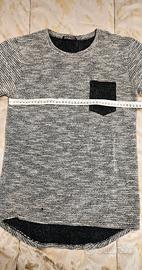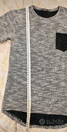 Maglia da uomo con un design moderno e dettagli curati. - Tessuto mélange grigio e nero. - Taschino applicato sul petto. - Fondo asimmetrico e rifinito. - Made in Italy - Cotone - Taglia L, misure precise in foto