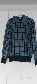 Maglia Kappa da uomo con un design a quadri e cappuccio. Si può indossare in entrambi i lati, con sfondo nero o con sfondo celeste/blu