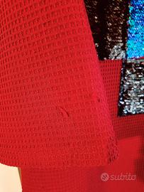 Maglia/vestito bordeaux con croce in paillettes nero/verde. Taglia L, qualche filo tirato come in foto