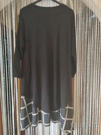 Vendo maglia vestito da donna nero con maniche 3/4 e decorazione dalla vita in giù sul davanti e sul dietro sulla parte finale motivo tipo scozzese nero e bianco con le seguenti misure
