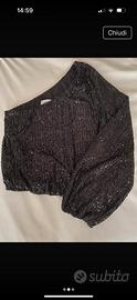 Maglietta in paillettes mono spalla nera. Indossata una volta