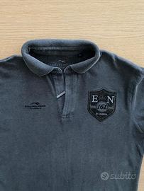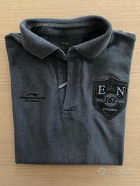 Maglia a maniche lunghe Etiqueta Negra. Colore grigio scuro, 2 loghi ricamati sui davanti, con inserti di color nero molto particolari sulle maniche e sul dietro. Taglia L da uomo. Vintage