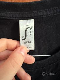 Maglietta nera con stampa Woodstock 3 Days of Peace and Music in color oro. - Stampa iconica del festival. - Design a tema Woodstock.