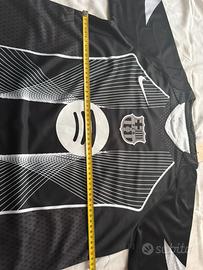 Maglia FC Barcelona, edizione speciale nera con design geometrico e sponsor Spotify.