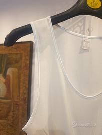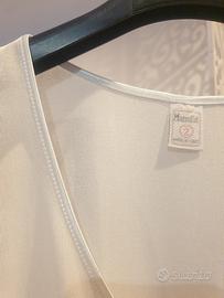 Maglia S/L con profili in raso elasticizzato in organzino di seta pura. Misura II Nuova con cartellino. Misura sottoascella cm. 32 Lunghezza cm. 58