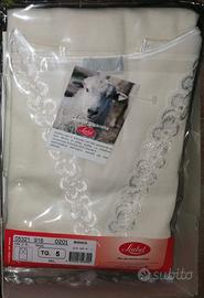 n. 2 Canottiere Liabel lana cotone con pizzo spallina larga bianca TG 6 interno :100% cotone ; esterno: 75% lana 25% poliammide. Prezzo 27 euro