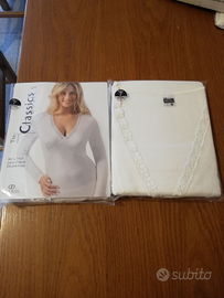 Maglie intime donna Samma in lana-cotone con manica lunga e segno coppa. Bianche. Nuove nella loro confezione. Disponibili in varie taglie: