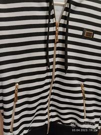 Quello a righe è taglia S, ma va bene anche per una M, è abbastanza largo. In ottime condizioni.