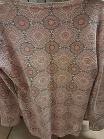 abbigliamento donna fantasia usato poco scollo a V allacciato davanti colore pesca mis M/L