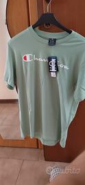 Maglietta a maniche corte Marca: Champion Taglia: M Colore: verde menta / verde chiaro Tessuto: 100% cotone Misure: - 40/41cm Larghezza spalle - 67/68cm lunghezza Totalmente nuova. Mai indossata Provvista di cartellino di acquisto