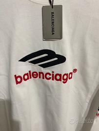 maglietga a maniche lunghe balenciaga bianca perfetta per la primavera con un tessuto non troppo leggero mai indossata quindi ancora con cartellini e tutto attaccato ,Con stampa avanti e retro.