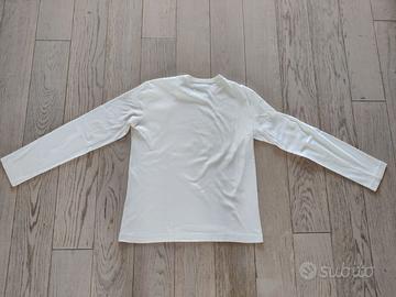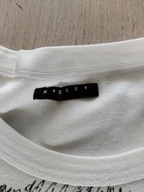 Vendo maglietta bianca Sisley a maniche lunghe taglia L (veste un po' stretta) usata ma in buono stato.