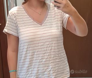 Maglietta a righe bianca e rosa. Taglia L. SOLO SPEDIZIONI.