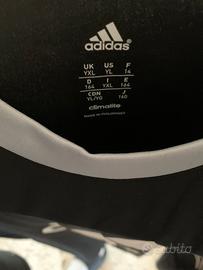 Questa maglietta Adidas nera è perfetta per gli allenamenti o per lo sport. 🏃♀️ Il logo Adidas e la grafica minimal la rendono anche adatta per un uso casual. 👕 Vendo perché non mi serve più, è in ottime condizioni e pronta per una nuova casa! 🏠