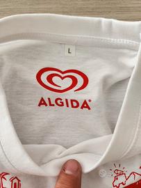 Maglietta vintage con logo Algida. - Logo Algida rosso sul davanti. - Piccolo logo Algida rosso sulla manica destra.
