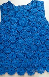 Una maglietta realizzata all'uncinetto con il filato 100% cotone. Taglia M-L La circonferenza della maglia è 96 cm. Lunghezza 61 cm
