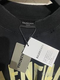 maglietta balenciaga con stampa avanti e retro molto popolare con segni di “usura” voluti e fanni parte della maglietta con un tessuto ne troppo pesante ne troppo leggero perfetto per la primavera
