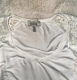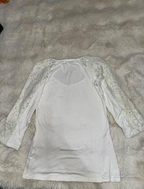 Vendo maglietta basic bianco panna con i dettagli sulla manica in pizzo, usata pochissimo