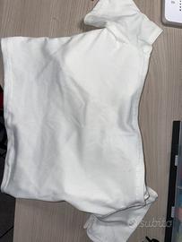 Maglietta bianca con fiocco decorativo sul davanti.