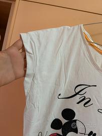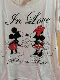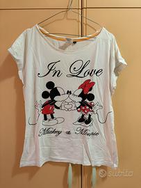 Maglietta bianca a tema Disney con stampa romantica di Topolino e Minnie e scritta "In Love" Brand: Terranova Taglia: M Condizioni: usata pochissimo, in ottime condizioni Vestibilità comoda, tessuto leggero e morbido, perfetta per look casual e per gli amanti Disney Colore: bianco con stampa nera e rossa
