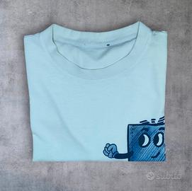 Una maglietta a maniche corte bianca firmata Armani con omino disegnato all' altezza del petto
