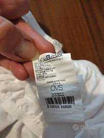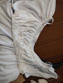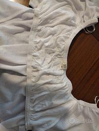 maglietta bianca in poliestere foderata a altezza del seno, taglia XS.