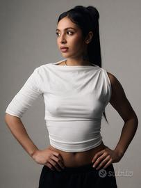 Maglietta bianca monospalla aderente su per trendy
