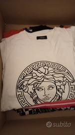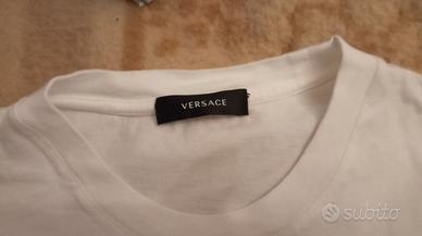 Vendo maglietta bianca originale Versace Stampa Versace Logo Medusa Nero usata poco buone condizioni Maniche corte Unisex taglia M Girocollo Prodotto in Italia Composizione esterno: 100% cotone Finiture: 100% cotone CONTATTA PER FOTO E INFORMAZIONI