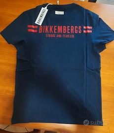 Maglietta Bikkembergs Tg. M Blu navy con scritte rosse 100% cotone