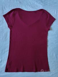 Maglietta Camaieu, col. fucsia, tg. L. Maglietta My basic by Camaieu, manica corta, colore fucsia, in cotone, scollo a V, mai usata, misure reali come da foto.