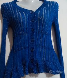 Elegante #maglietta #cardigan con un tocco scintillante. Design a coste verticali.