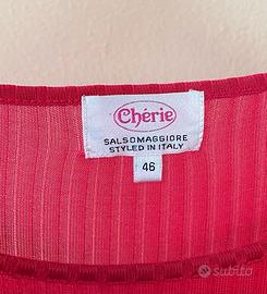 Maglietta colore rosso corallo, manica corta e scollo tondo, 100% seta.