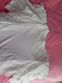 maglietta come nuova indossata solo in occasione della cresima colore panna con pizzo laterale destro e sinistro. taglia xs età 12/14 nessun difetto