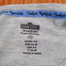 maglietta di cookie monster- sesame street grigia