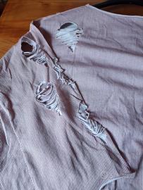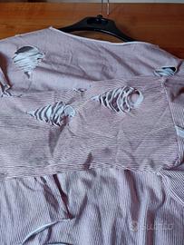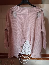 maglietta copri costume in cotone a righine bianca e rosa T.L