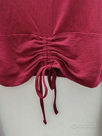 Maglietta crop bordeaux Zuiki, con collo alto, drappeggiato sul davanti. Taglia M. Mai indossato. Lunghezza 39 cm, spalle 35 cm e maniche 61 cm