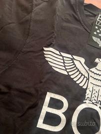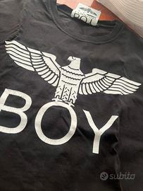 Stampa: L'inconfondibile logo "BOY" in caratteri bianchi capitali affiancato alla celebre aquila imperiale stilizzata, anch'essa in bianco. La stampa è ben visibile e nitida, l'elemento centrale del design.