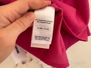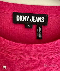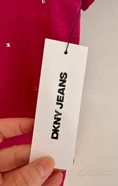 Maglietta corta rosa fucsia con strass DKNY JEANS.