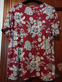 Vendo maglietta da donna, leggera per cui primaverile/estiva. Colore rosso con fantasia e brillantini girocollo.