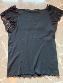 Maglietta da donna in cotone e pizzo, colore nero.