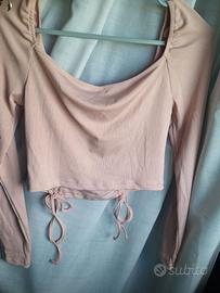 Maglietta maniche lunghe con coulisse e increspature frontali presa su Shein.