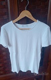 t-shirt mezze maniche bianca - a costine - in morbido cotone - girocollo semplice - taglio classico lineare