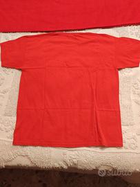 Maglietta rossa ispirata alla Scuderia Ferrari, taglia XL, con logo stampato sul petto.