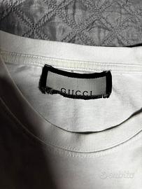 Maglietta originale Gucci a maniche corte, bianca, con il classico logo stampato sul petto. Stile essenziale ma iconico, perfetta per chi ama l’alta moda con un tocco street. Tessuto in cotone di alta qualità, morbido e resistente.