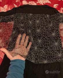 Bellissima maglietta con pipistrelli e ragni che si illuminano al buio. Una maglifica tela fatta di ragnatela. La taglia è 13/14 anni!